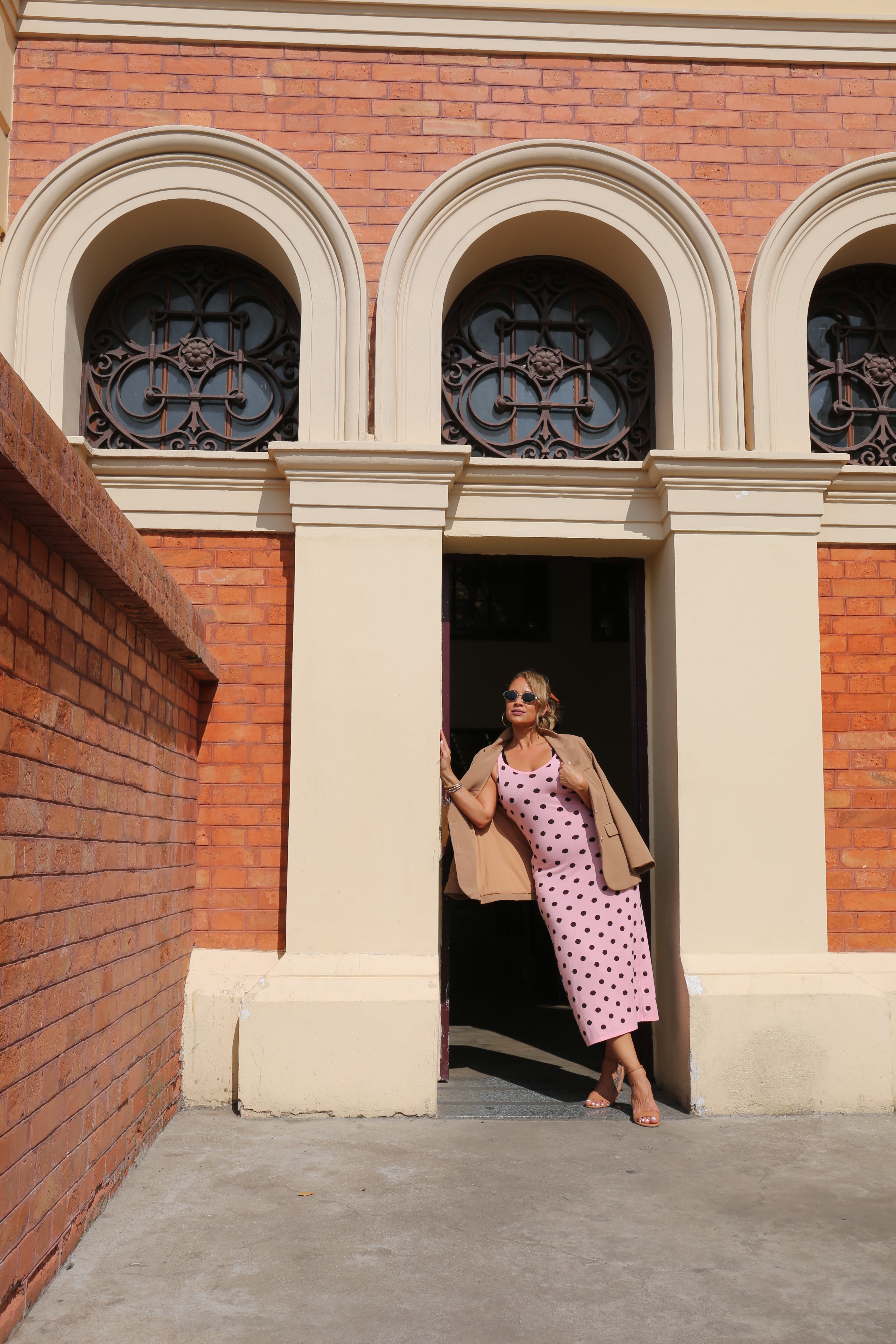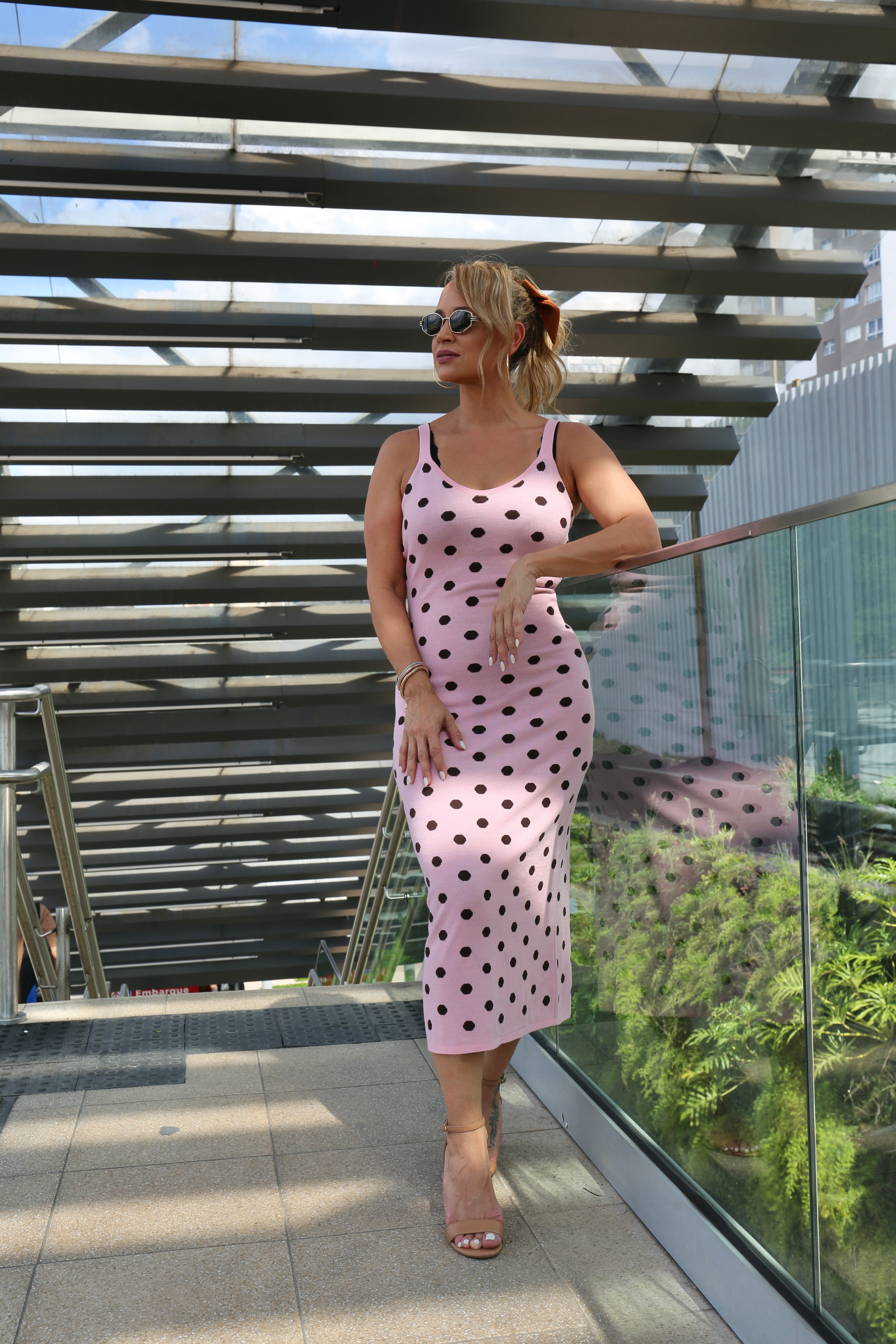 Chic and effortlessly elegant, this mid-length polka dot knit dress is designed to flatter every silhouette. The soft, stretchy knit drapes beautifully over the body, while the subtle back slit adds a hint of allure and ease of movement. Playful yet sophisticated, the timeless polka dot pattern makes it perfect for daytime outings or evening affairs.